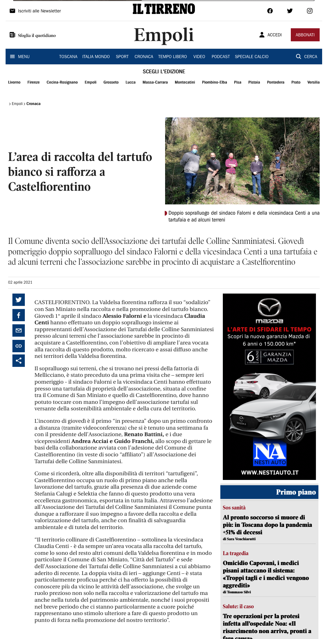 Venerdì, 30 Agosto 2019 19:56 Home San Miniato Una nuova tartufaia inaugura la stagione del ’Bianco’ Voci Feed A+AA- Una nuova tartufaia inaugura la stagione