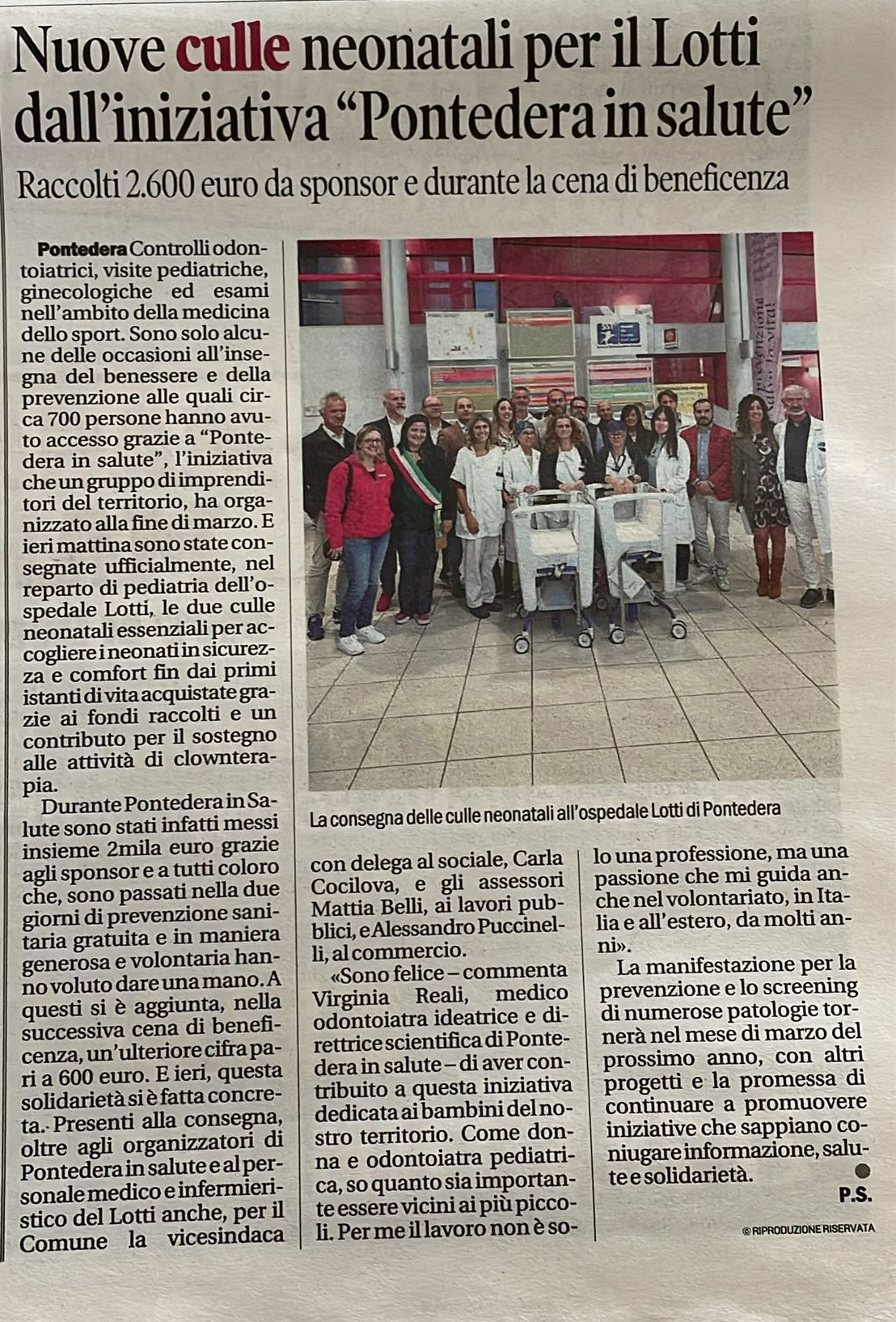 Nuove culle neonatali per l’Ospedale Liotti di Pontedera